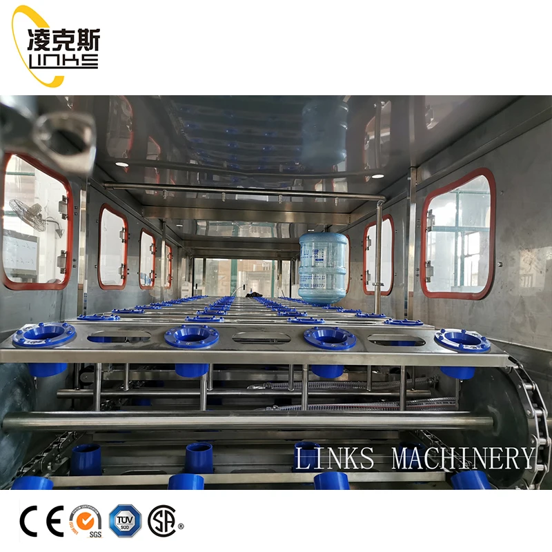 Automatic 19–20L big barrel water filling machine for polycarbonate returnable buckets and 5-gallon bottles. Ensures precise, hygienic, and efficient filling for large-volume bottled water production lines.