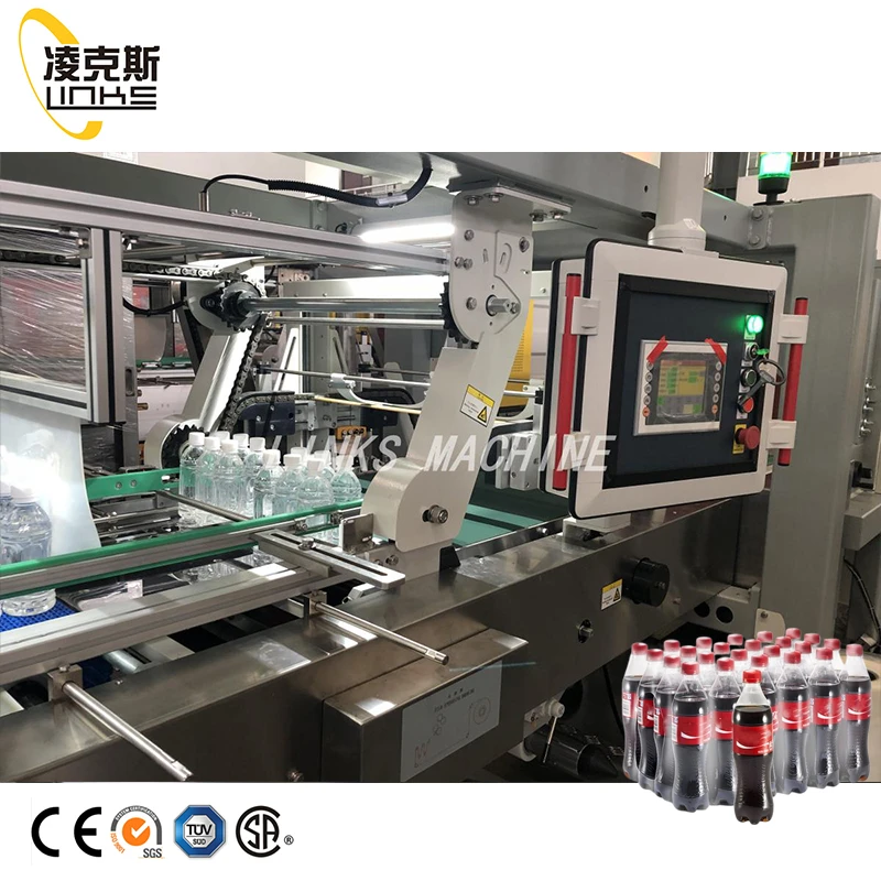 Automatic shrink wrapping machine with PE film packaging system, suitable for bottles, cans, and boxes. CE certified, it offers efficient, consistent, and high-quality packaging for various products, ensuring protection and professional presentation.