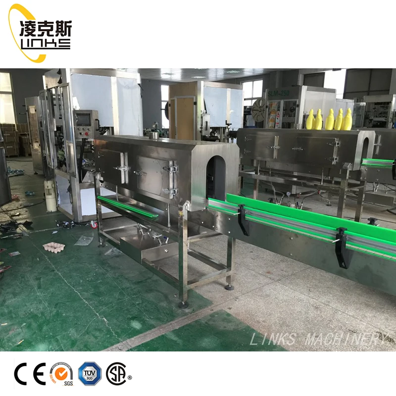 Full-automatic PET bottle labeling machine for beverages, juice, and mineral water. Applies thermal neck shrink sleeve labels with precision, ensuring consistent, high-quality branding and efficient production for plastic drinking bottles.