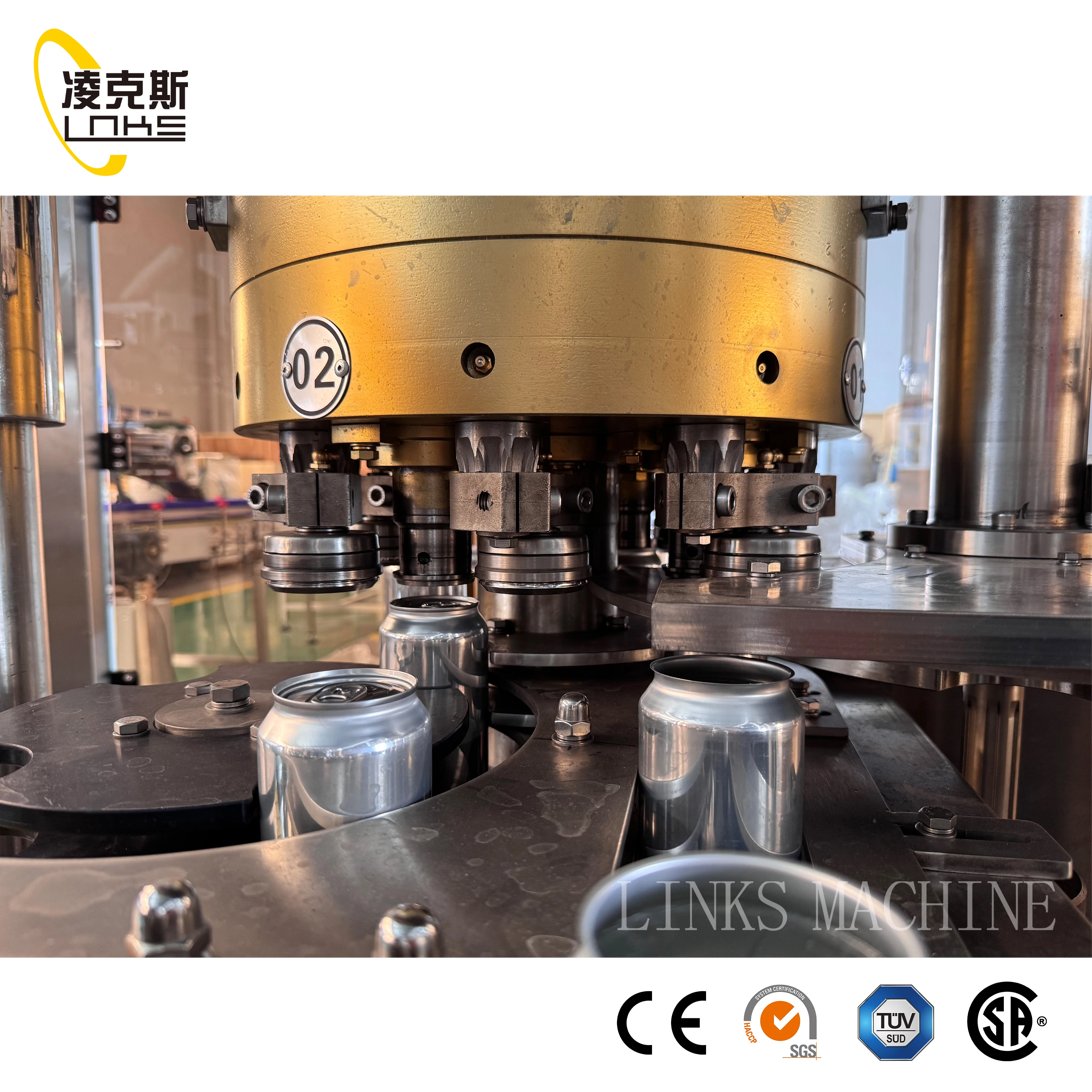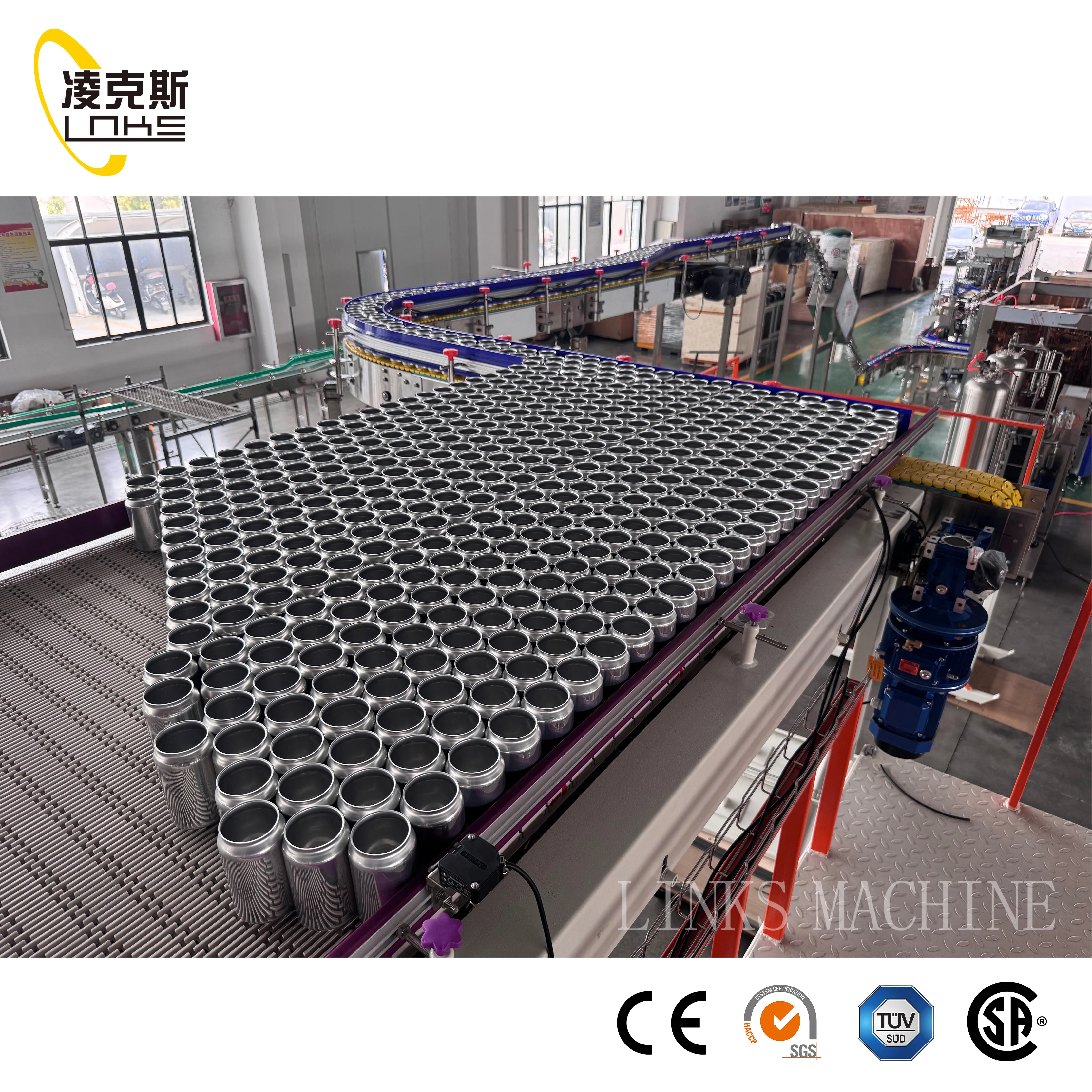 Fully automatic aluminium can CSD filling line for cola and carbonated water. Ensures high-speed, precise, and hygienic canning, ideal for large-scale beverage production and packaging.