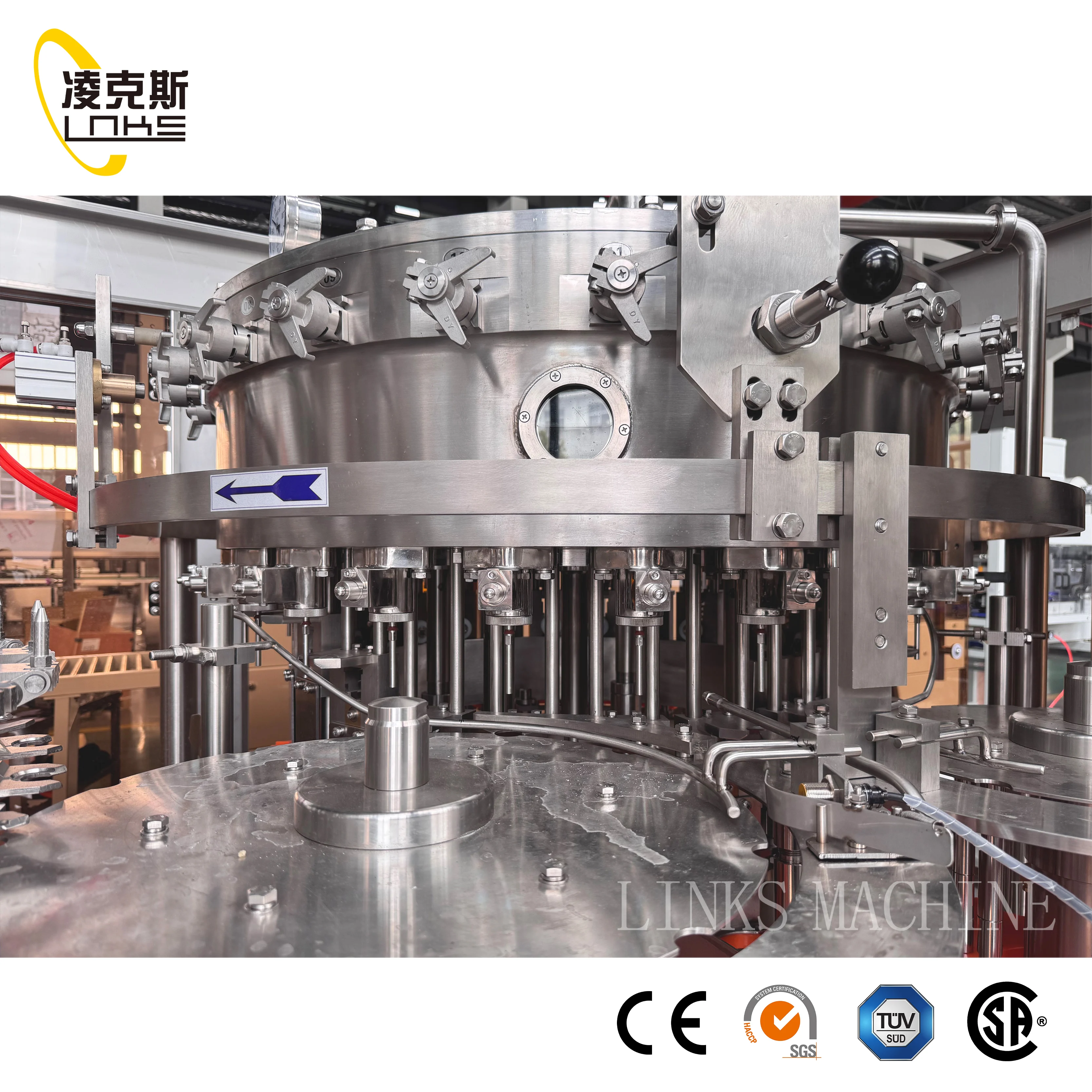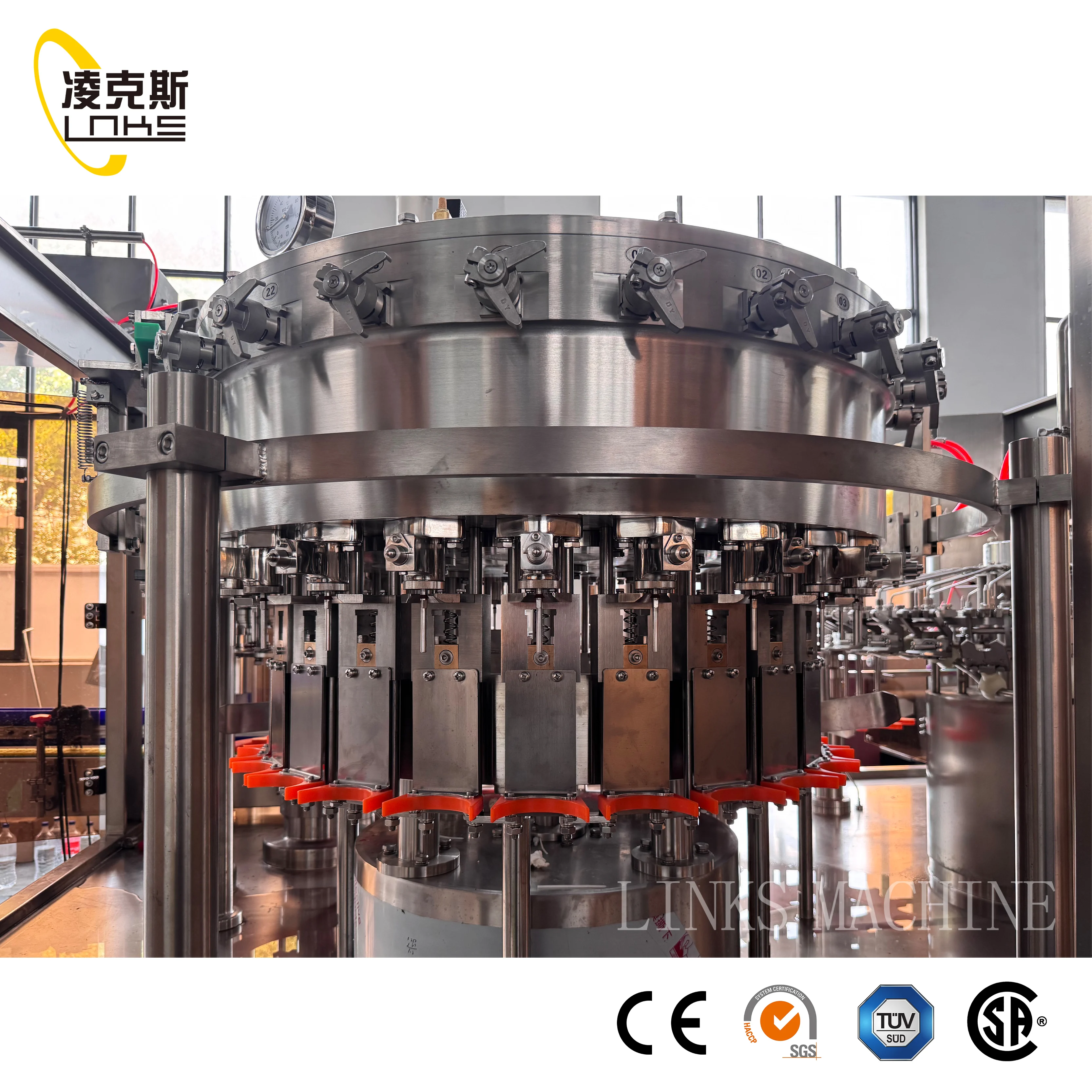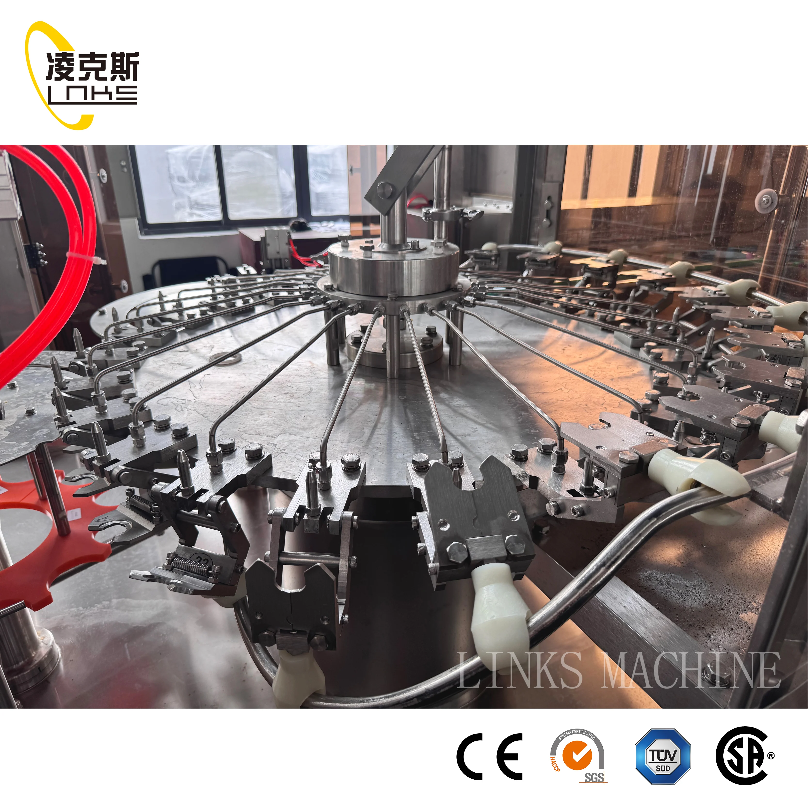 Zhangjiagang LinksMachinery Co., LTD. is located inZhangjiagang City, JiangsuProvince.It has international standard workshop more than 8000 square meters. It is one of the professional beverage packaging machinery manufacturers with collecting research, developmentand manufacturing. It is China's best beverage machinery equipment suppliers. As liquid packaging industry enterprise, the drink service network is all over the world more than 50 countries and regions, products are widely used in drinks, flavor, cosmetic, beer, milk, and pharmaceutical industries. Since company has begun, focused onthe professional technology --- beverage packaging machinery, to forge leading beverage packaging machinery, upstream and downstream related both beverage packaging equipment research and development. Always adhere to technological innovation to drive the company development.It has been applied for patents, has formed a unique market with competitive advantage. In order to make our equipment performance betterand more stable of operation, our company cooperateswith domestic professional institutes, colleges and universities to carry out the combination of the filling machine andoptimized the related equipment design.