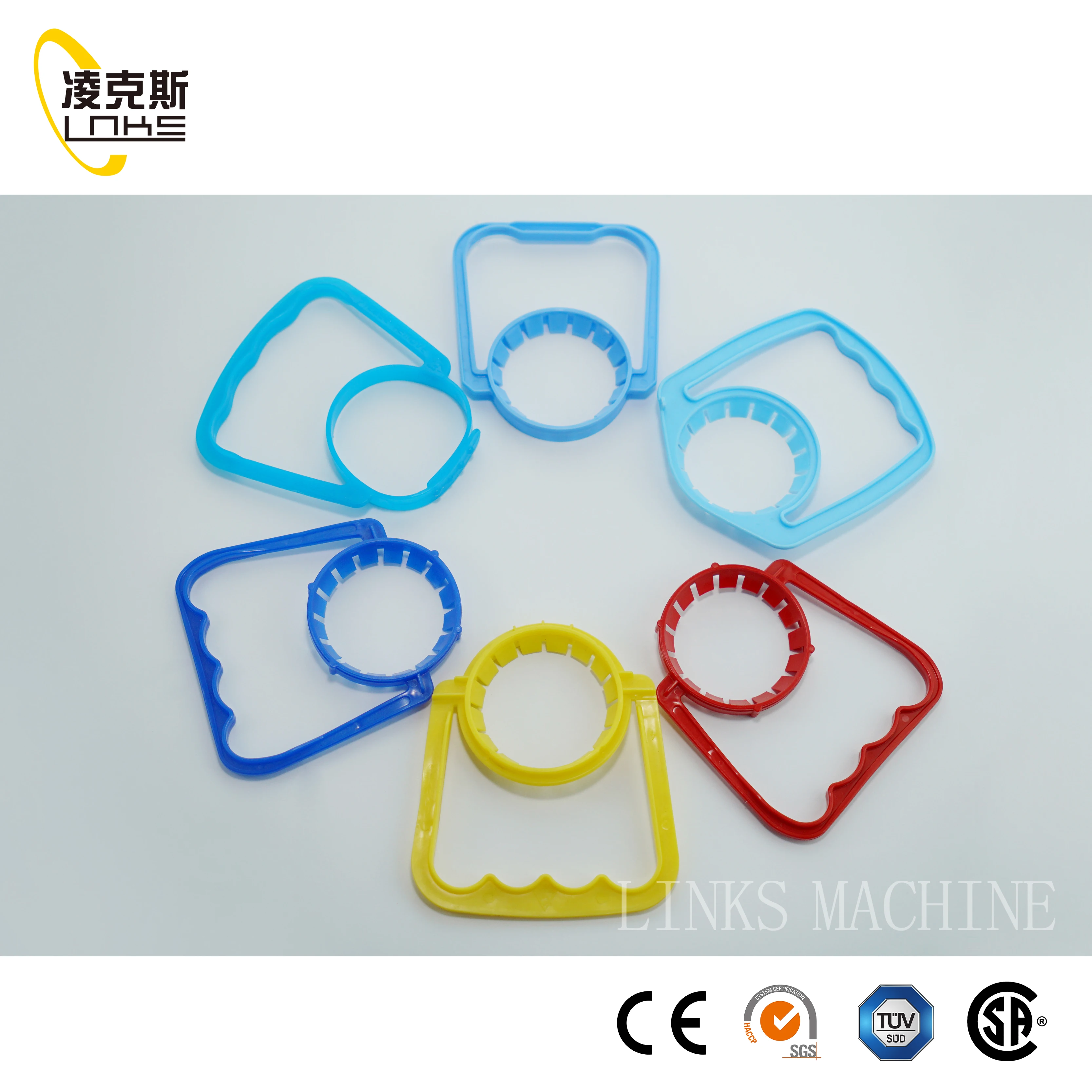 Alças plásticas duráveis para garrafas feitas de material PP reforçado, oferecendo um aperto ergonômico seguro e alta resistência. Disponíveis em cores personalizadas com impressão de logotipo, essas alças realçam a marca enquanto garantem transporte seguro e confortável para garrafas em diversas aplicações de embalagem.